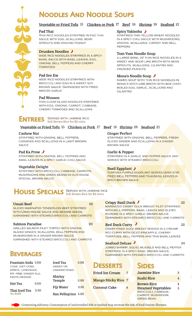 Welcome to Umaii Thai Restaurant, a culinary gem located at 8209 Market St, Wilmington, NC. Renowned for its vibrant flavors and authentic Thai dishes, Umaii offers a diverse menu that caters to every palate. Signature dishes like the Umaii Beef and Salmon Paradise embody the essence of Thai cuisine, ensuring a delightful experience with every bite.